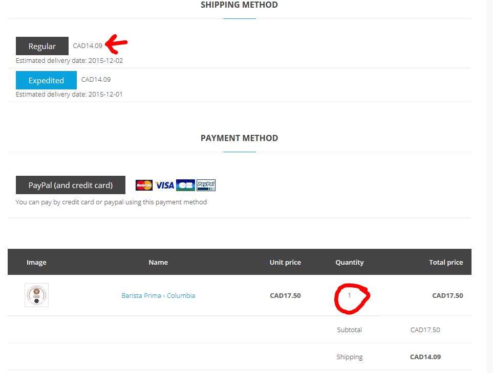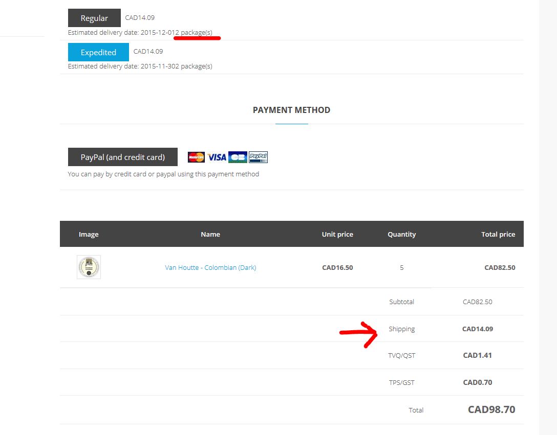 NOTE: when only 1 product is put in the basket, I get a shipping price of $14.09 also, and no indication of the number of packages. (see image: Capture-1-product-shipping-price.jpg)