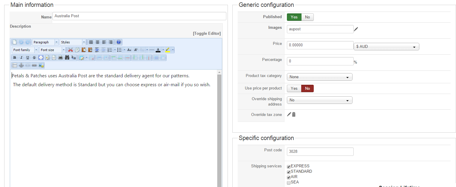 I cannot see Aust Post shipping to see what it looks like to edit it further.