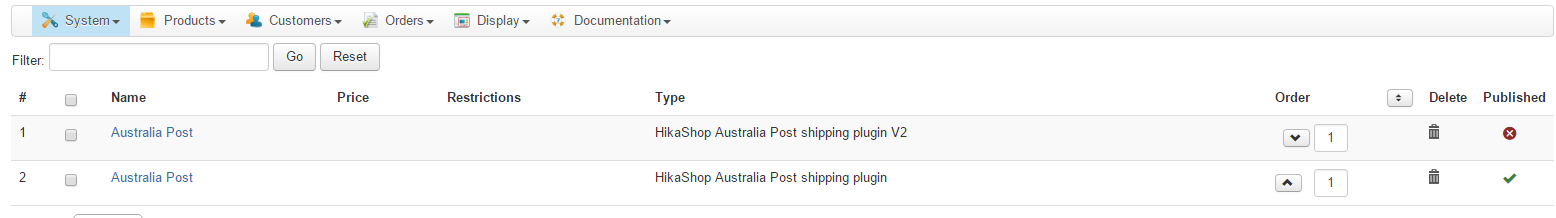2. Note that if you want to change the ordering of your shipping method you'll just have to change the value of the ordering option of your shipping method via "Hikashop->System->Configuration->Shipping methods".