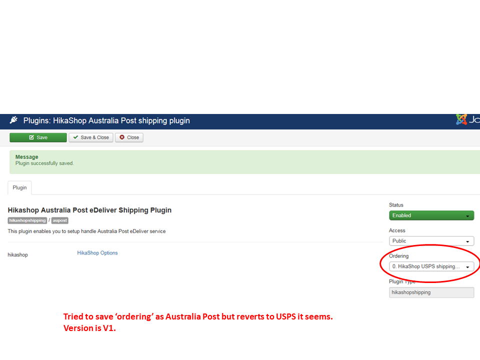 I tried to change the method to Aust Post but it appears to revert to USPs. See picture AustPostShipping(V1)-1b.png