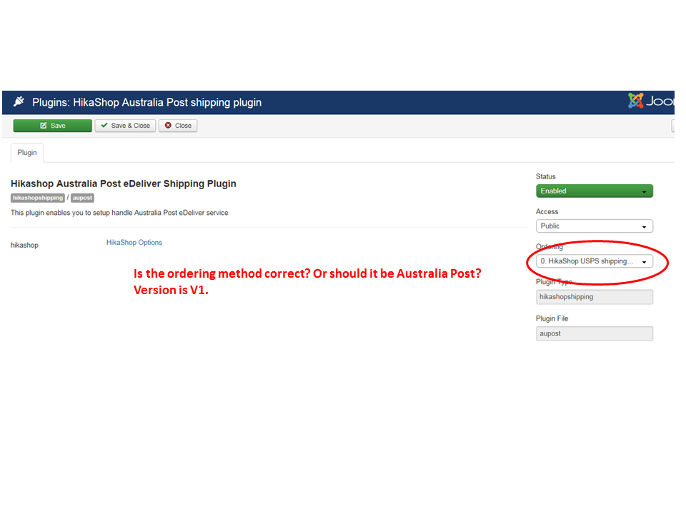 I noted that perhaps the shipping method in the options was incorrect. It seemed to default to USPS. See picture AustPostShipping(V1)-1a.png