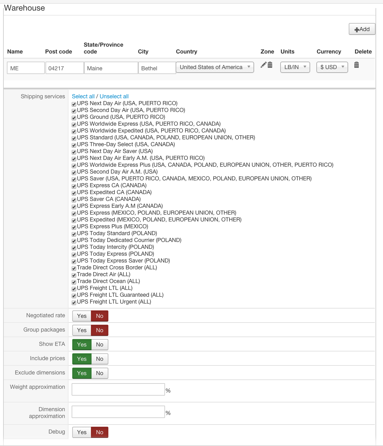 1. Not set any restrictions or shipping zones on the UPS configuration settings or on the products or warehouse