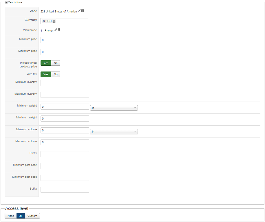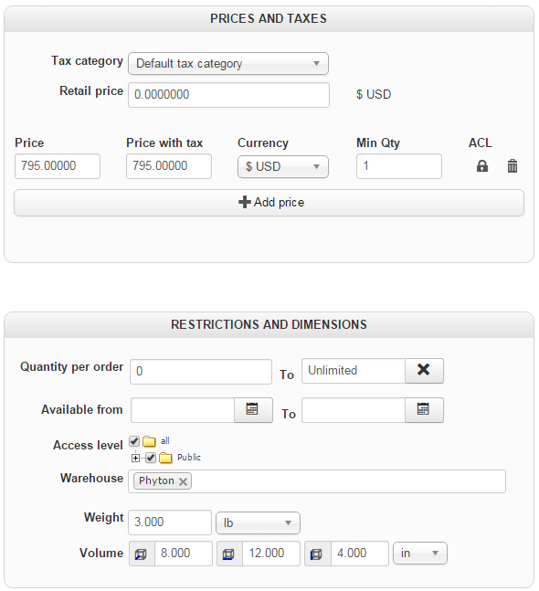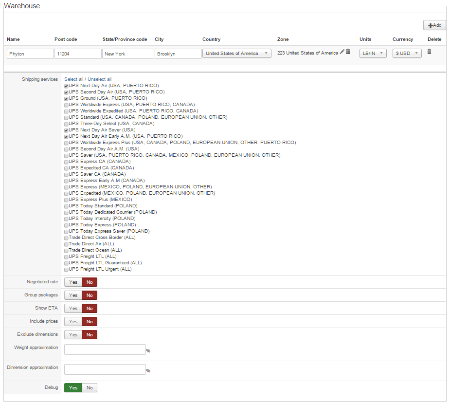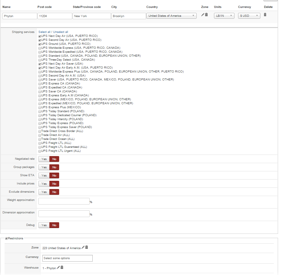 Dimensions and weight specified, restrictions are correct (both the same in manual and ups shipping, and manual is shown during checkout), warehouse set in product and ups restrictions. What is the problem, I wonder...