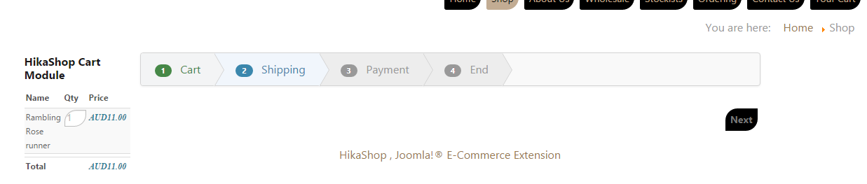 I can put items into my cart but when I proceed to checkout and go to shipping it is blank - there is no where for the buyer to enter information. I also see that unlike cart, payment and end steps the shipping is not a clickable link.