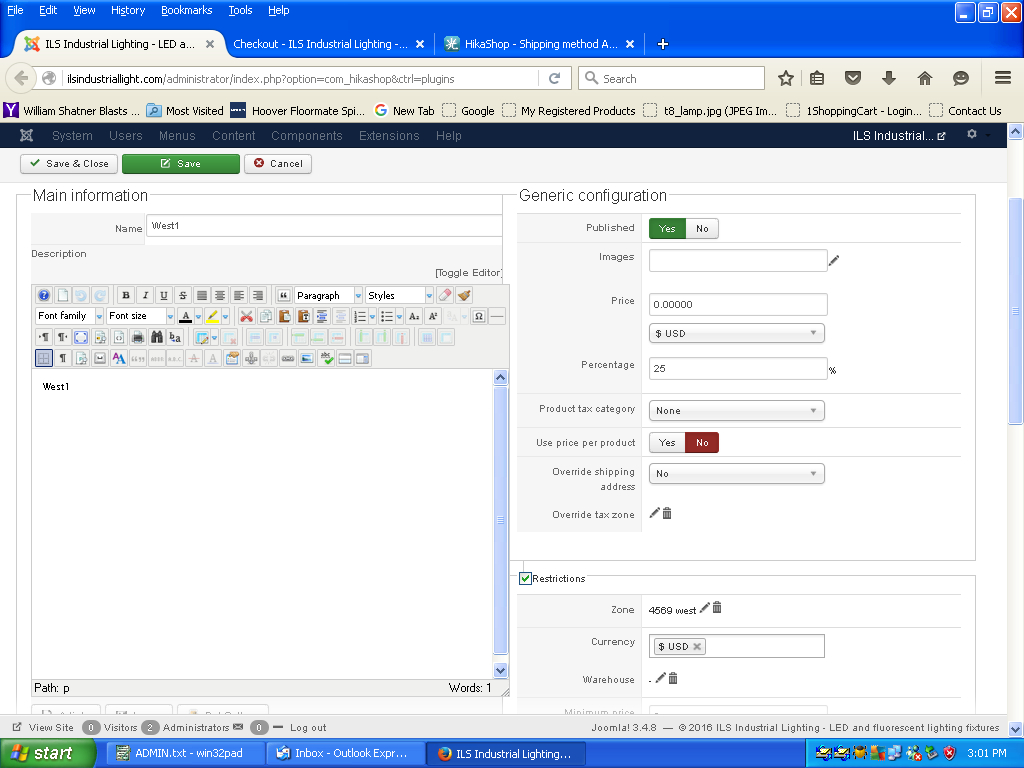 -- Joomla version -- : 3.4.8