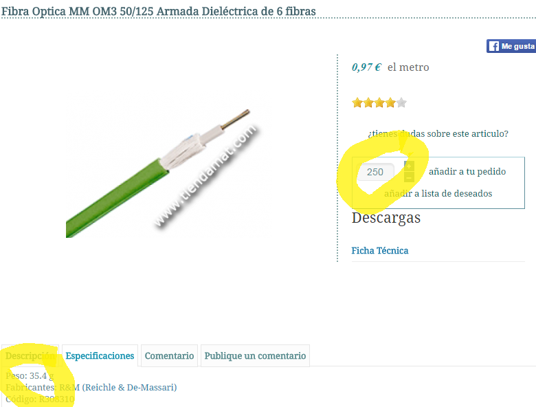 - I add this, and I also add some other products, that only has weight. For example 250 meters of this: