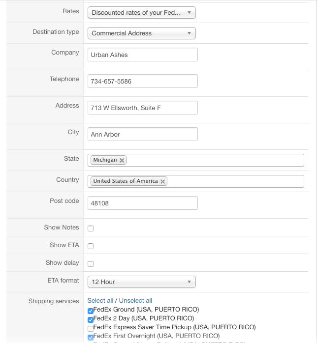 Screen shots attached. The shipping rate we were expected is somewhere around $65.00 for Fedex Ground. What we're seeing is around $154.00.