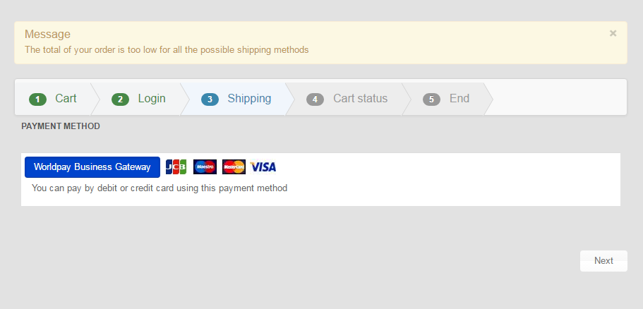 The total of your order is too low for all the possible shipping methods