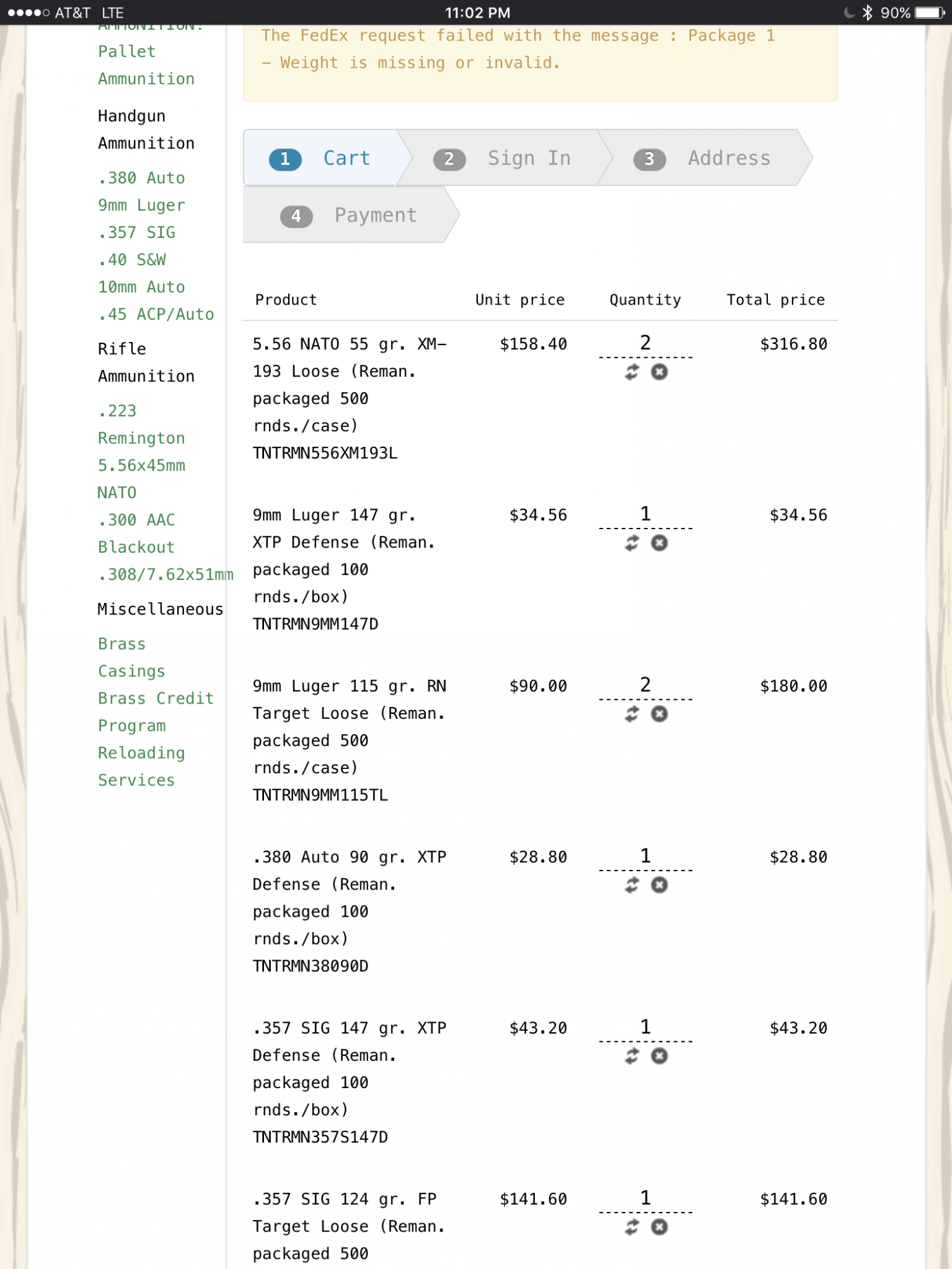 The FedEx request failed with the message : Package 1 - Weight is missing or invalid.
