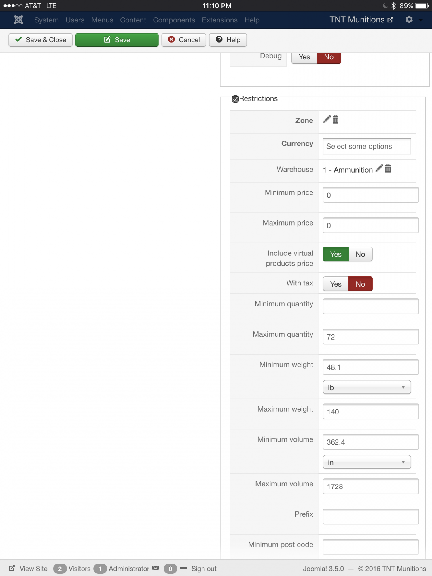 I have weight and dimension restrictions in place on my shipping methods, but after calculating everything it falls fine to within the restrictions of one of the shipping methods. I've attached a couple of screenshots of the restrictions for the shipping method that it should fall into. All products have a weight as well.