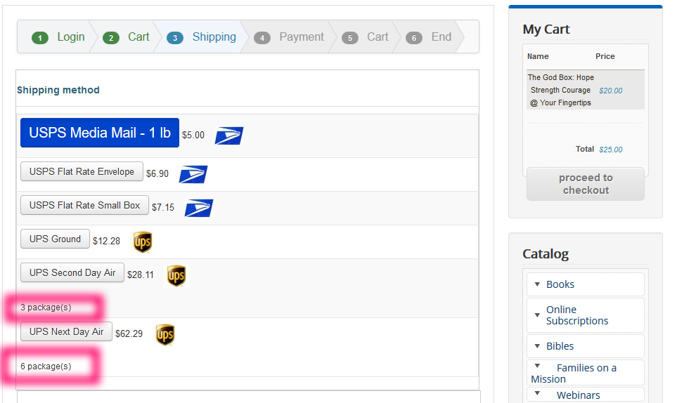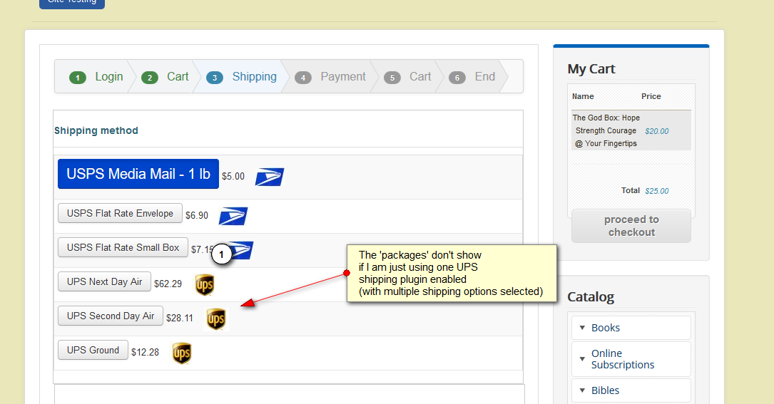 However, now we have a different problem ... it is defaulting to the USP Next Day Air shipping method (the first on in the UPS options); however, that makes the shipping $62 on a $20 item.