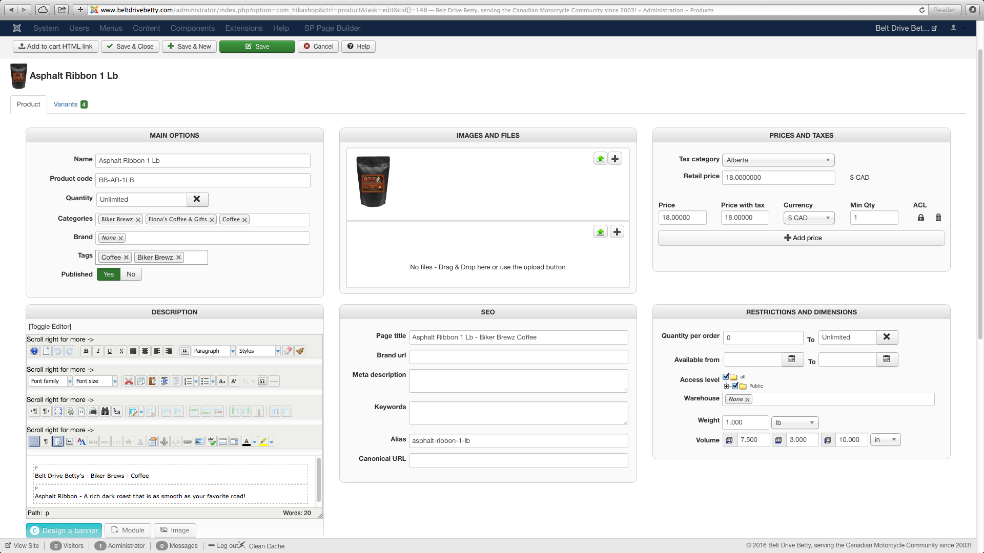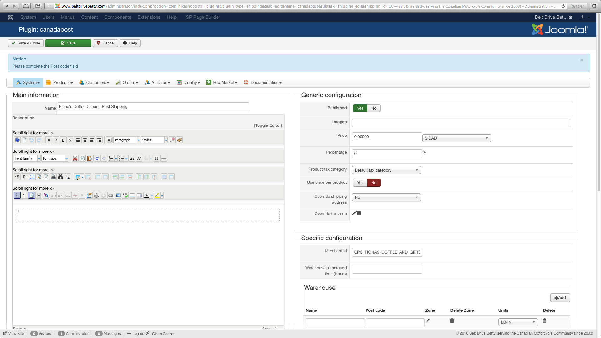 -- Joomla version -- : 3.6.4