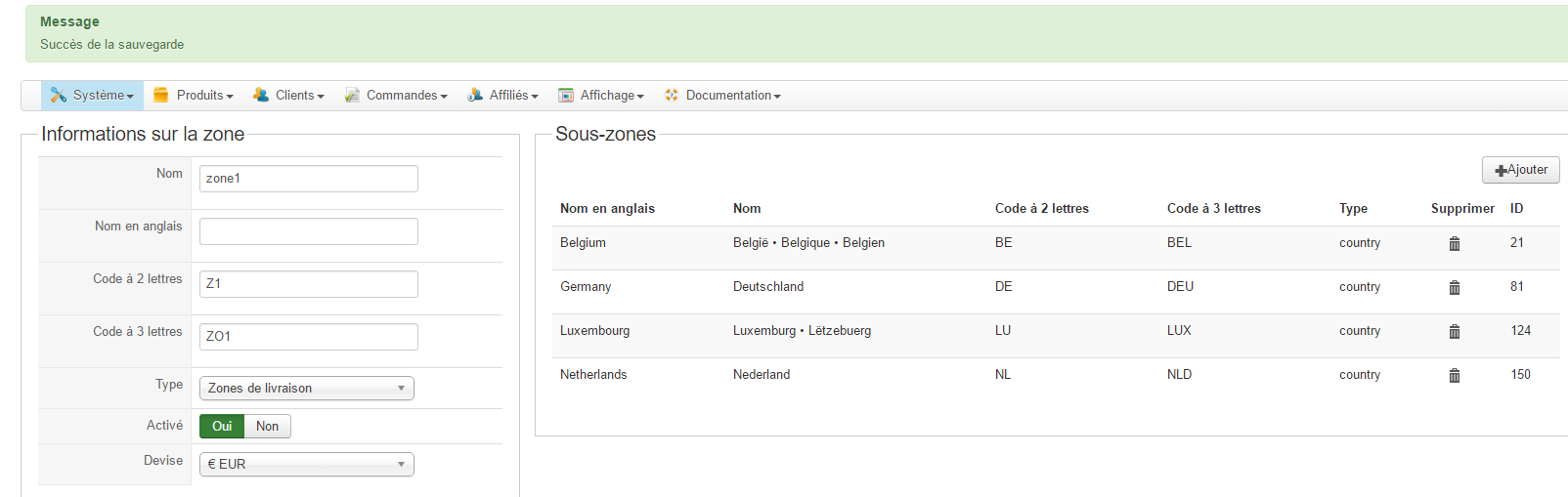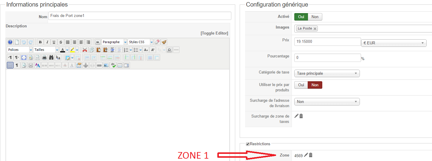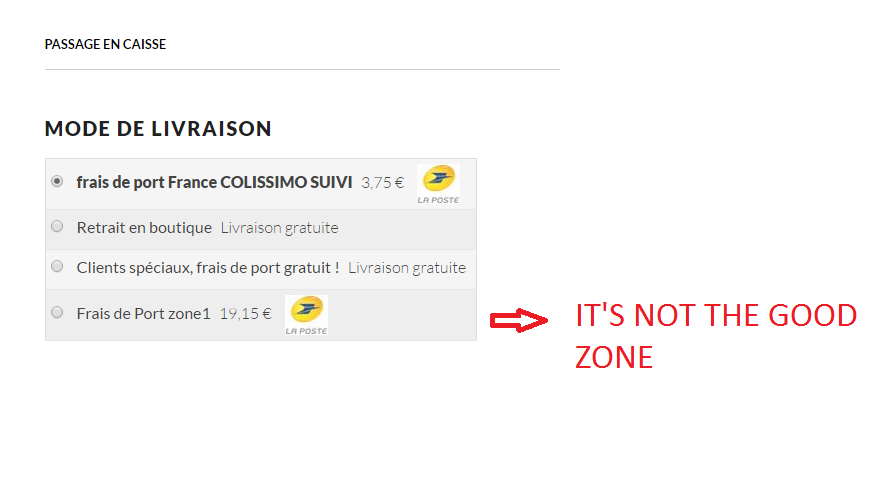 AND when i do the checkout, the user adress is in french, I DON'T HAVE THE "Frais de Port zone1" who appears...
