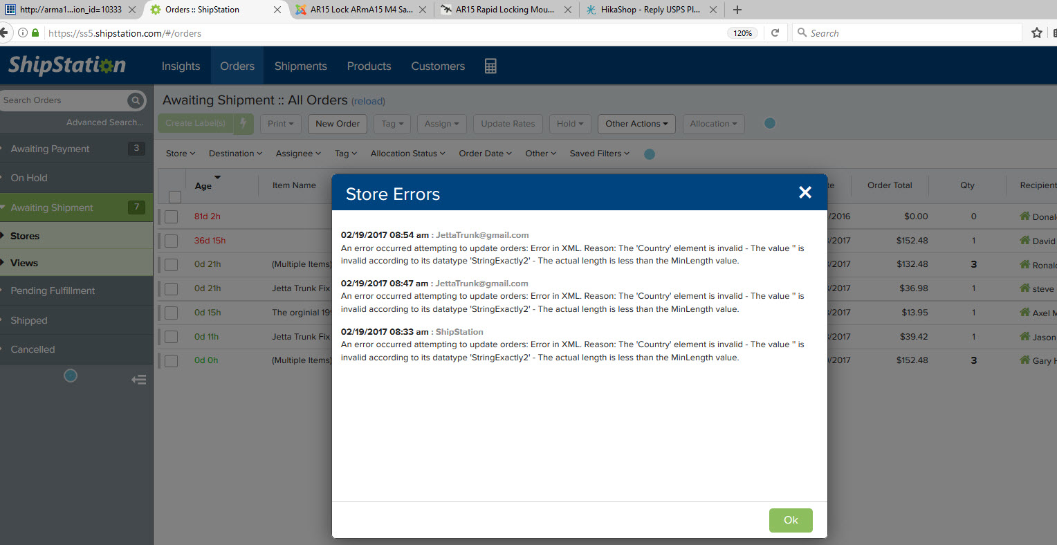 So here is the same shipping program but using hikashop with the paypal pro plugin. This one is an example of my problem.