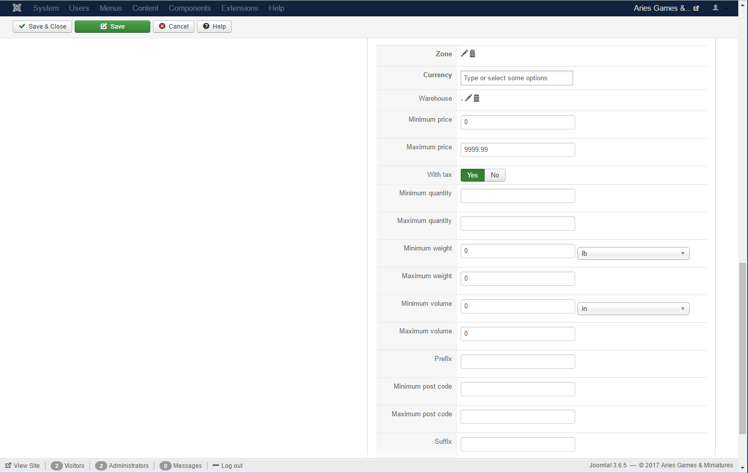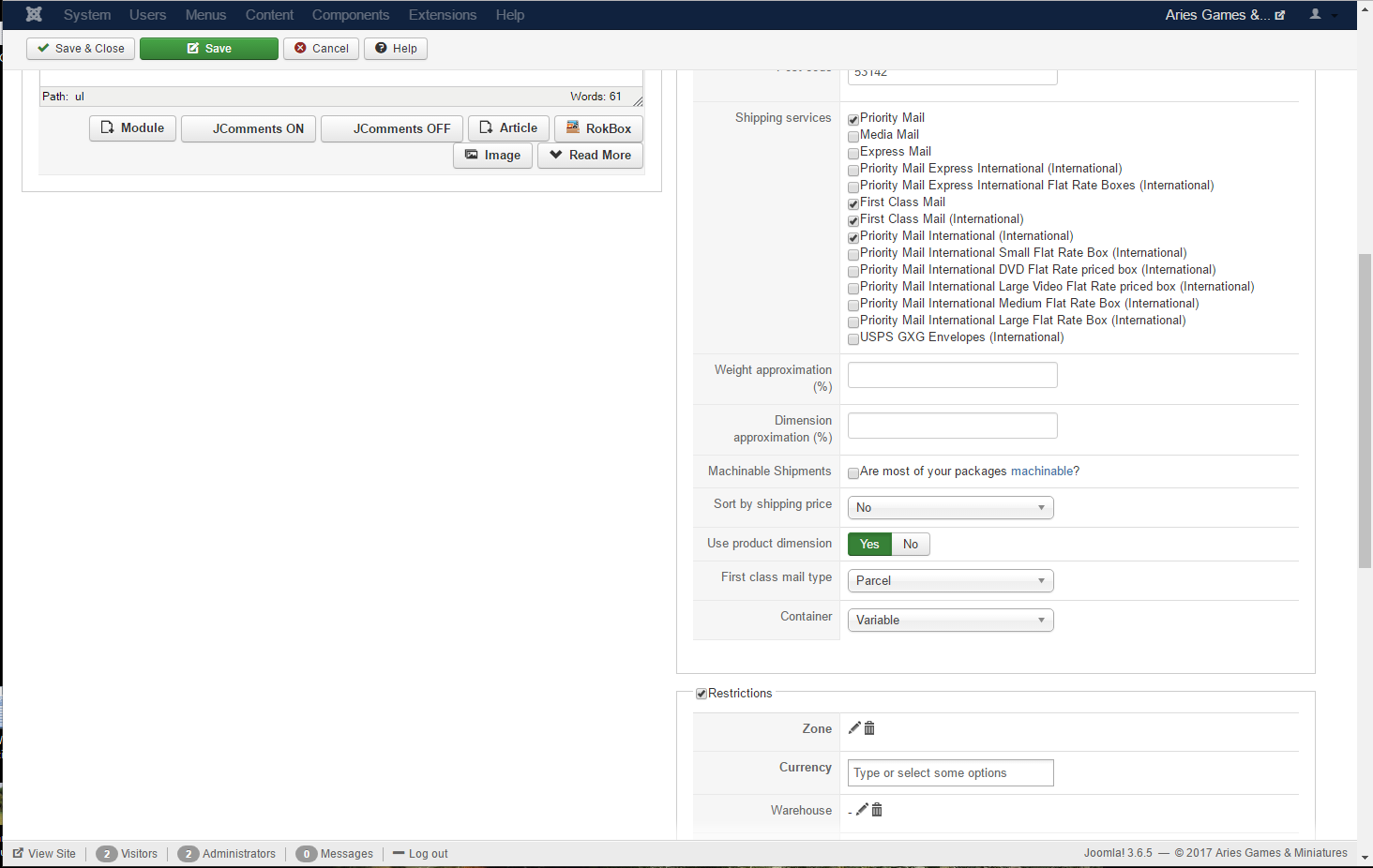 -- Joomla version -- : 3.6.5