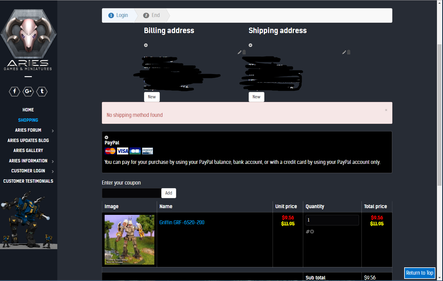 -- url of the page with the problem -- : www.ariesgamesandmiinis.com