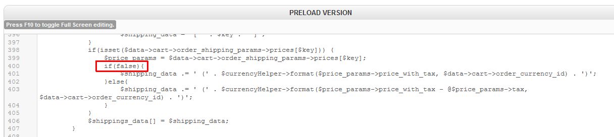 $shipping_data .= ' (' . $currencyHelper->format($price_params->price_with_tax - @$price_params->tax, $data->cart->order_currency_id) . ')';