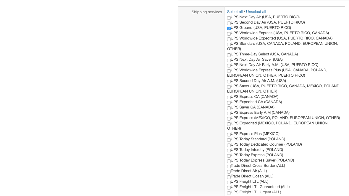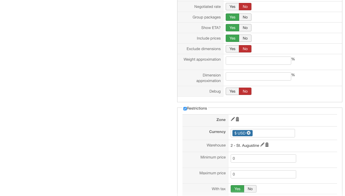 Could you provide screenshots of ALL the options of the shipping method(s) of the warehouse with the id 1 ?