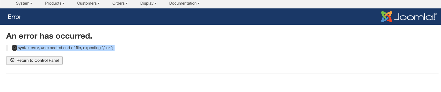 I bought Hikashop Essential and when I click on : HikaShop manual shipping plugin, I get this error : syntax error, unexpected end of file, expecting ',' or ';'