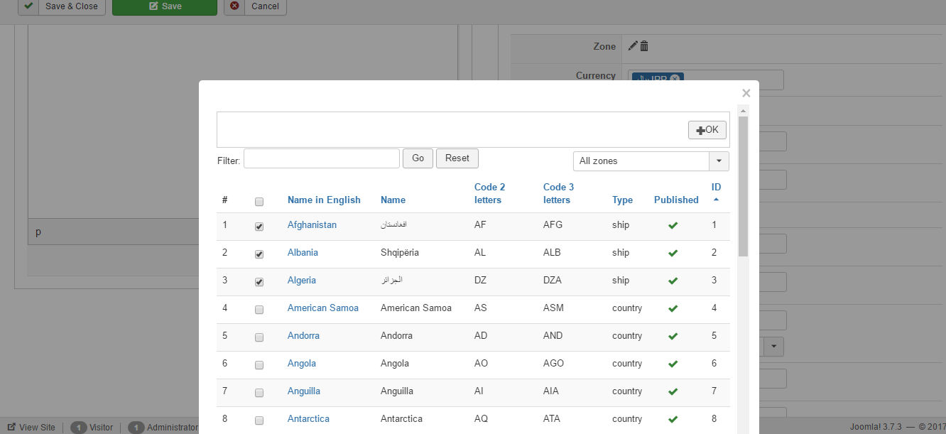 when mark and select and press ok button in zone country ---> JUST selected one country . no cant selected more country