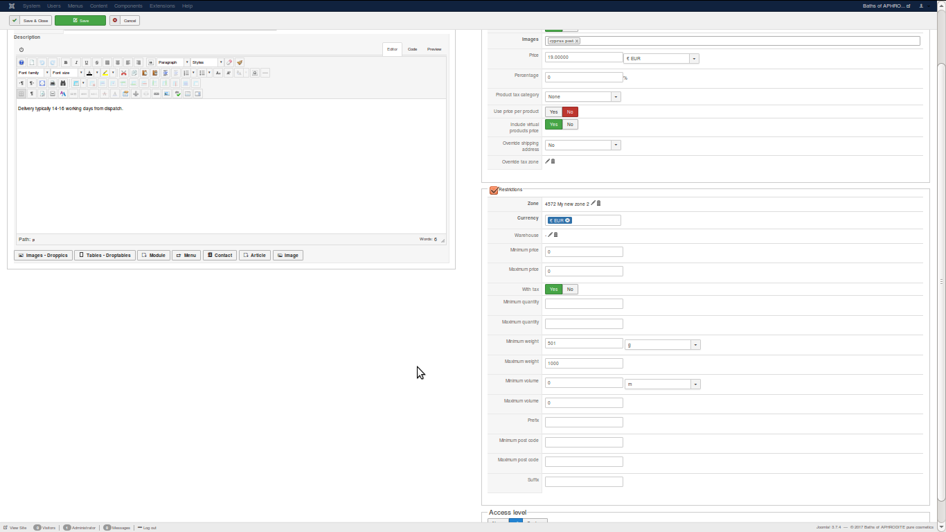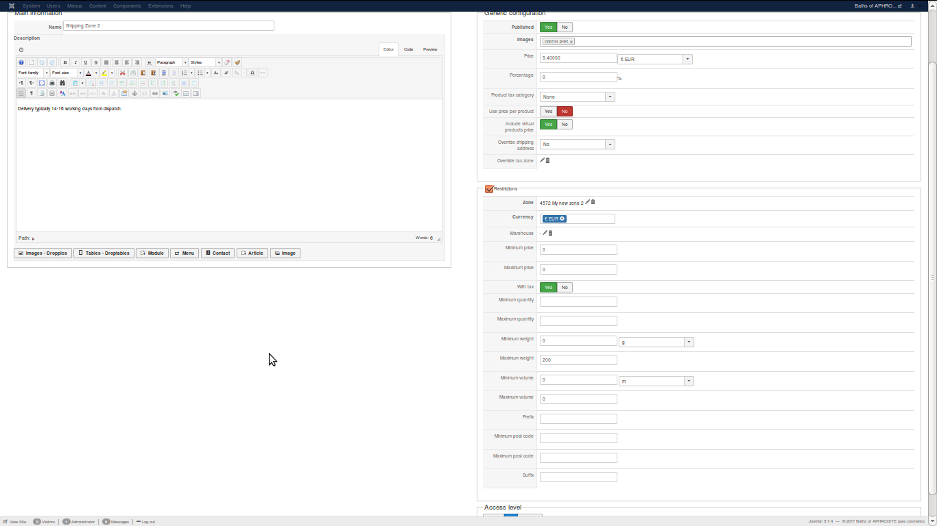 And shipping cost of EUR5,40 restriction is