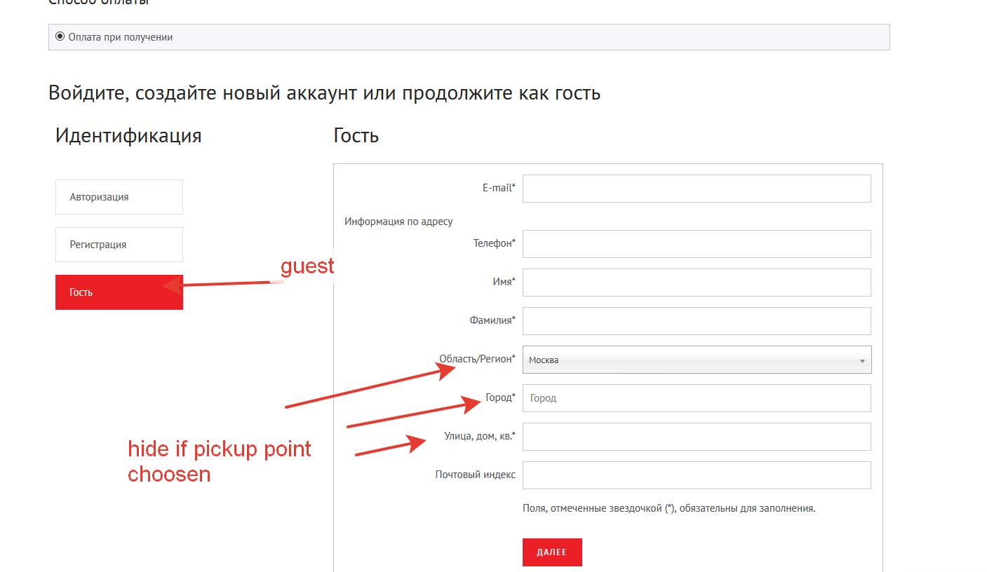 I need to hide address fields based on the method of delivery, not the other address fields.