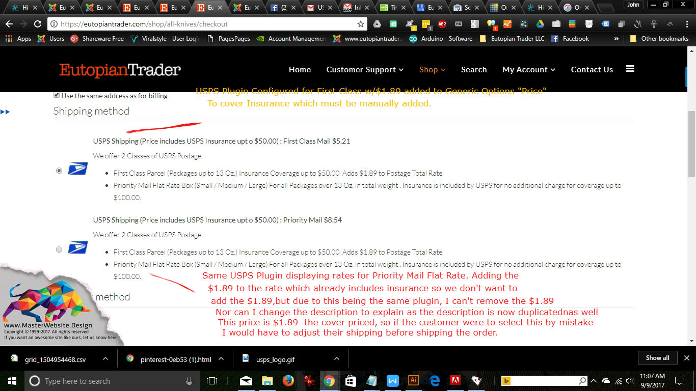 So how would one correctly set up the USPS Shipping Plugin for this with out causing these issues? I considered setting up a second "Manual Shipping Plugin, but since even the Priority Mail Flat Rate postage rates are variable, I can't see how that would work either because the customer could still choose the wrong rate causing me to have to adjust the rates prior to shipping.
