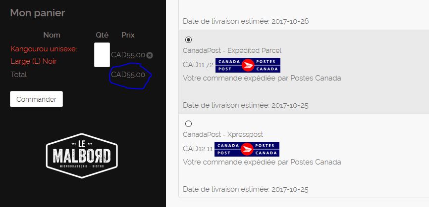 I've setup the Canada Post Advanced HikaShop plugin and it works - I'm seeing the selected shipping options. My question - is it possible to have the shipping cost added to the order total? Right now, when selecting a shipping option, I see the spinning wheel on the cart suggesting an ajax update is taking place, but the total stays the same. Is it possible to have an updated total (product + shipping) when the shipping method is selected?