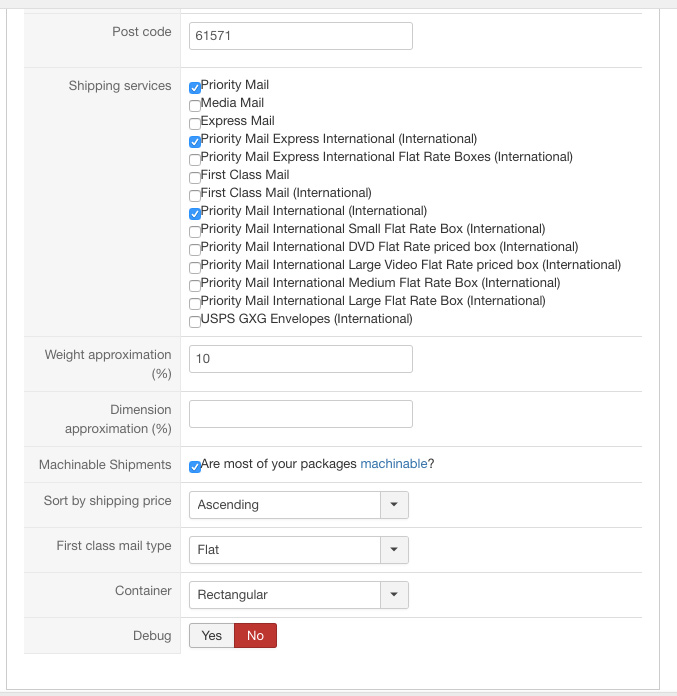 Priority Mail configuation