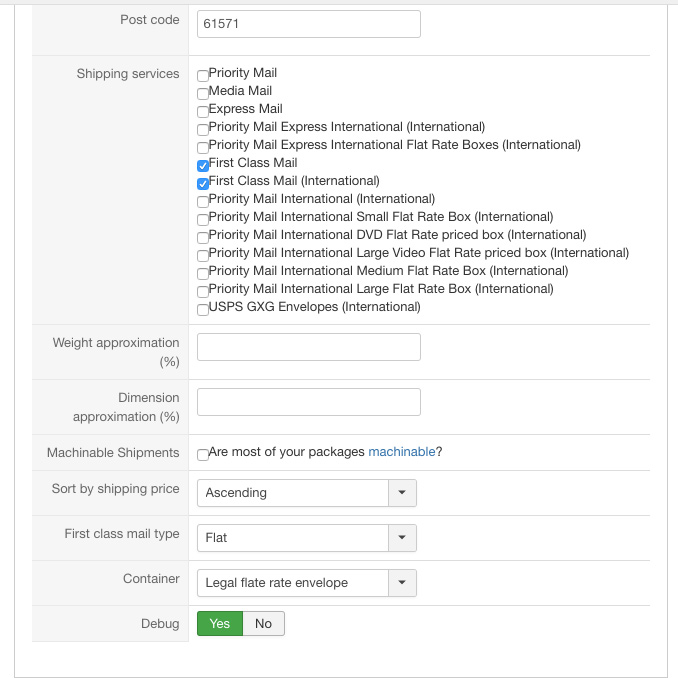 When I enter the shipping configuration on my USPS Plugin, I have the First Class Mail type set for "Flat," yet it continues to pull up the parcel cost, regardless. While this doesn't effect USPS Priority Mail, as it doesn't differentiate between flat and parcel, it DOES effect the price between flat and parcel for First Class Mail. I even tried creating two different USPS shipping options, one specifically for Priority Mail, and one for First Class Mail.