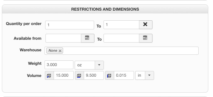 The product dimension screen … errors out in Priority Mail if the dimensions are not filled out, but I've tried leaving the weight out, as well as the dimensions, to no avail.