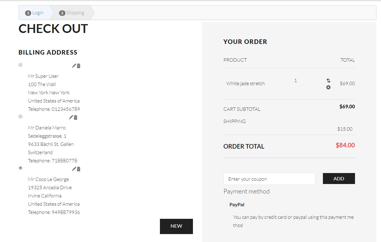 What i do....i take a product. Put it in the cart. Then i make the checkout. then i login and then i change the billing adresses. (marked use same adress as billing)