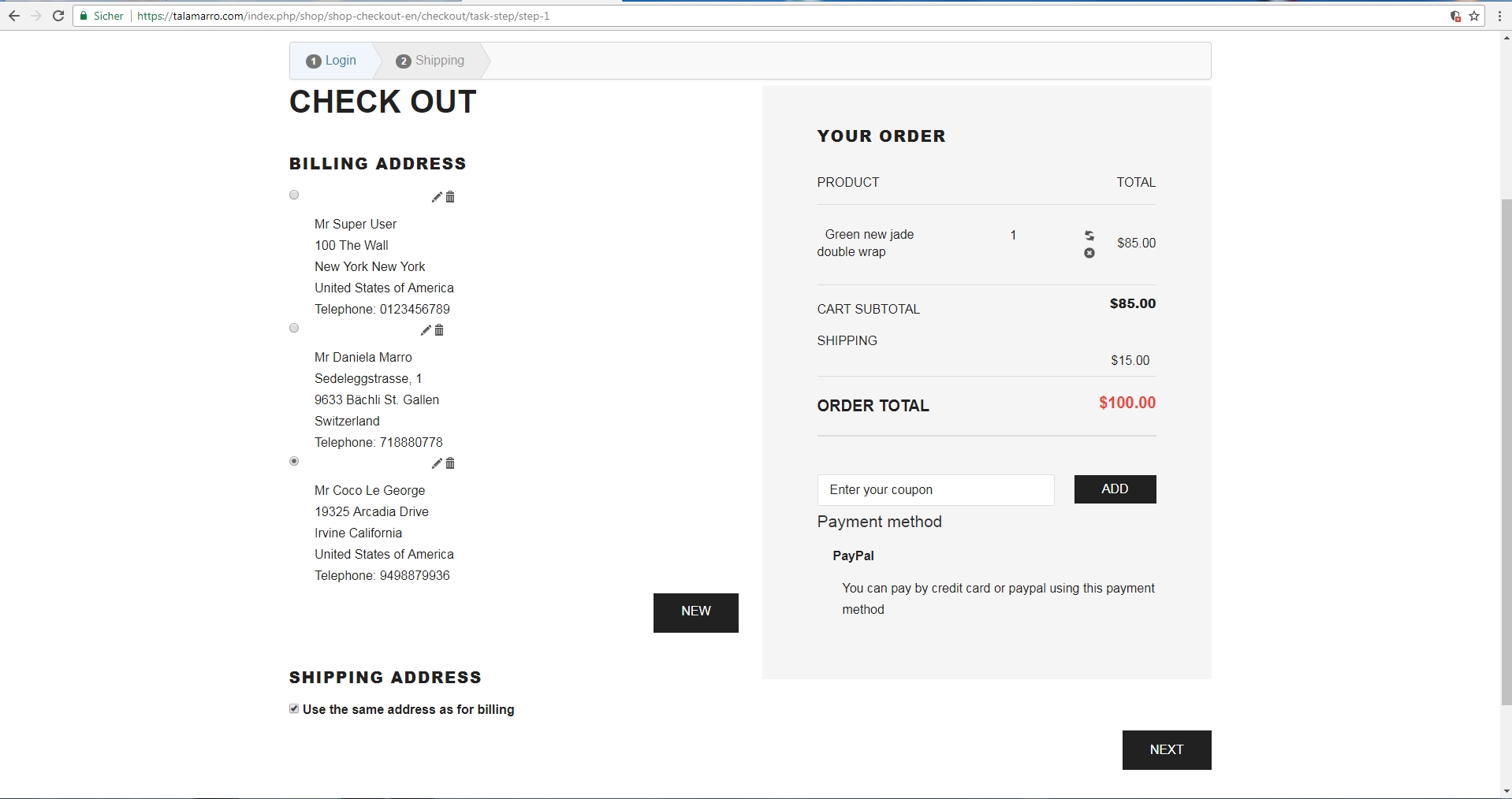 In my 2nd Post you can see it's selected. And as i told in my last post, the mark is checked ( use same adress as billing)