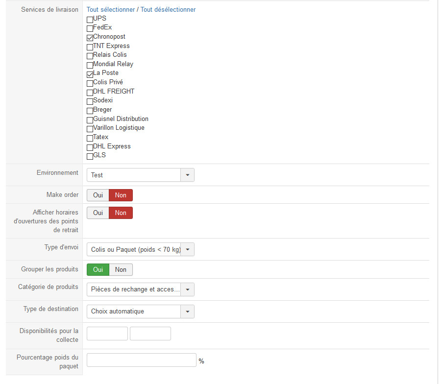 Après avoir supprimé les restrictions, il est proposé plusieurs solutions de livraison Chronopost mais pas en point relais(voir image jointe), mais pas de livraison avec La Poste.