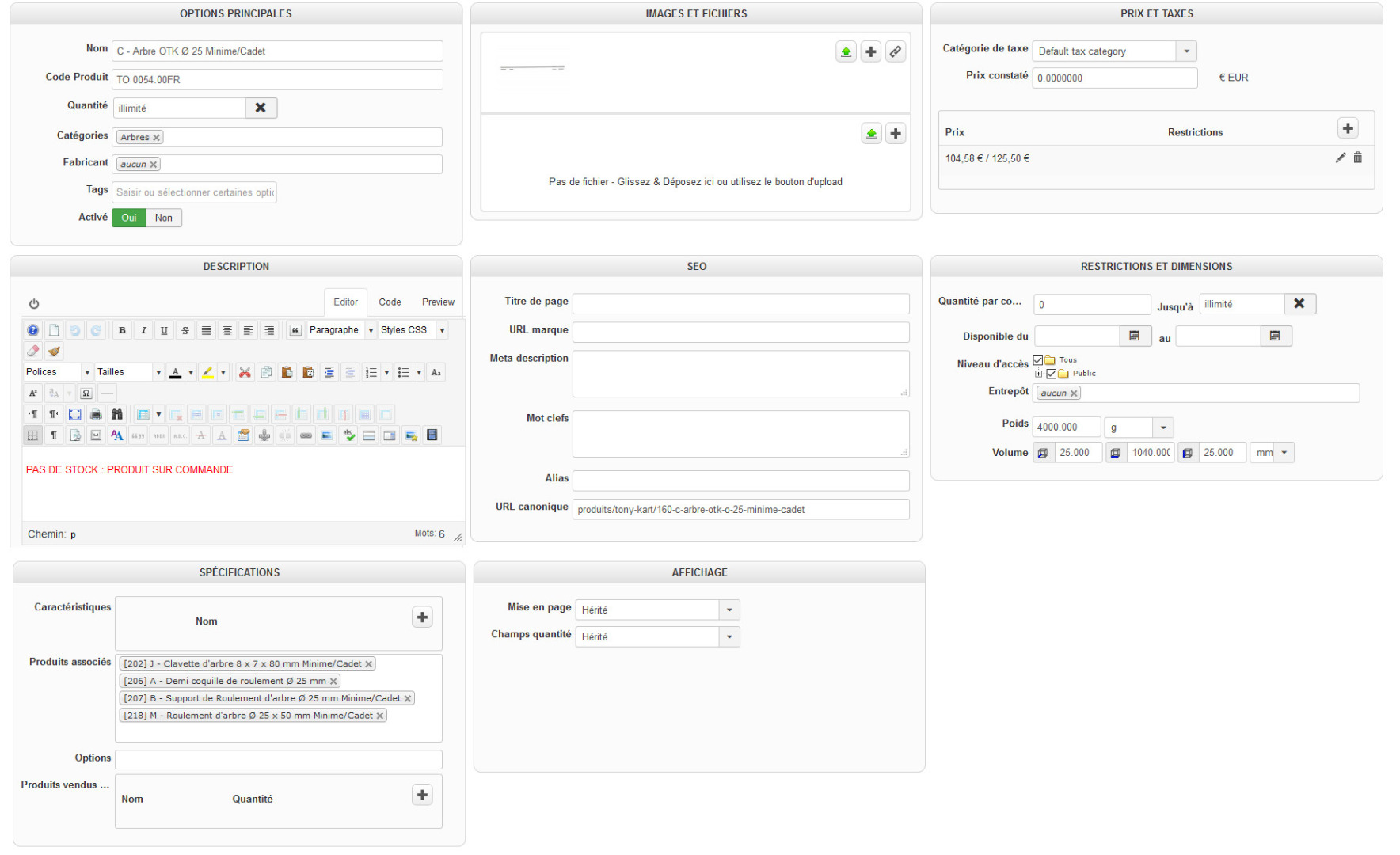 Je vous joins les captures de la configuration du plugin Envoimoinscher et des 2 produits