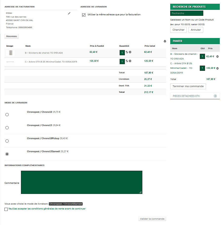 Et il faudrait aussi des captures des produits ajoutés au panier lors du test.