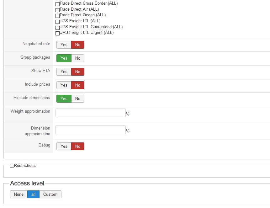 for shipping within the U.S. to domestic addresses, the system is quoting the rates fine., However for any address outside the U.S. no rates are shown. No restrictions are in place and all zones are published. Any thought where else to look?