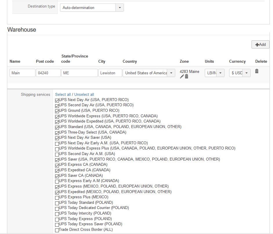 Domestic UPS rates are being displayed, but International rates are not