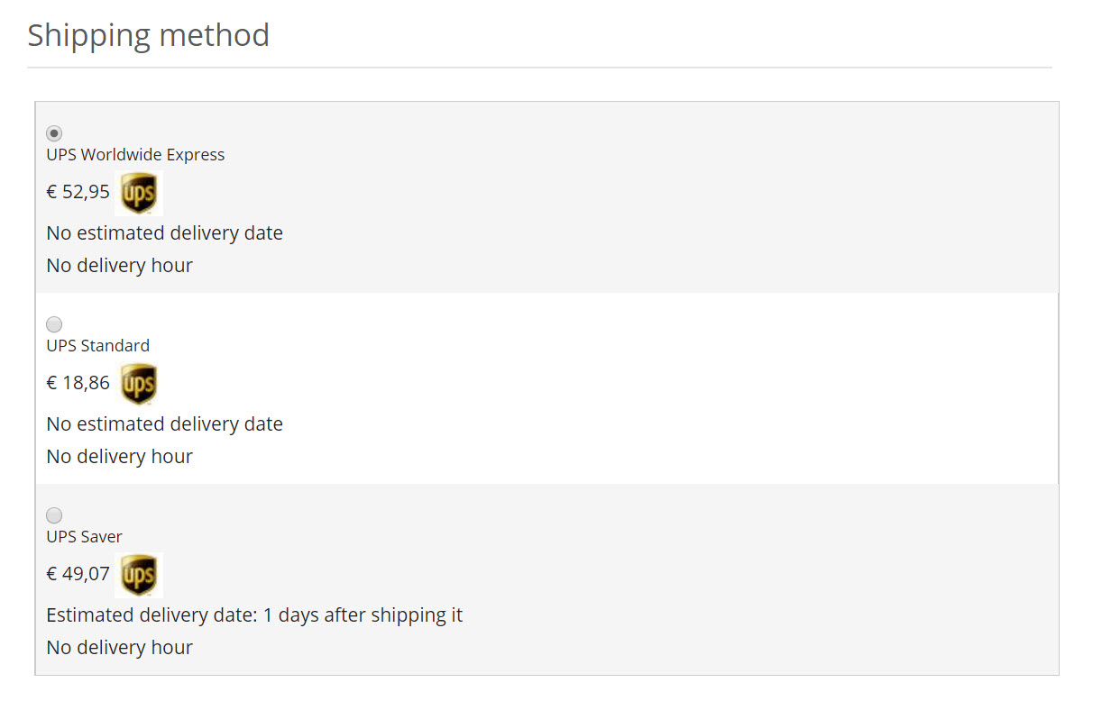 UPS Shipping plugin "Show ET"