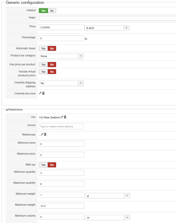 I have restricted to countries and at the moment I am trying to test New Zealand (NZ)