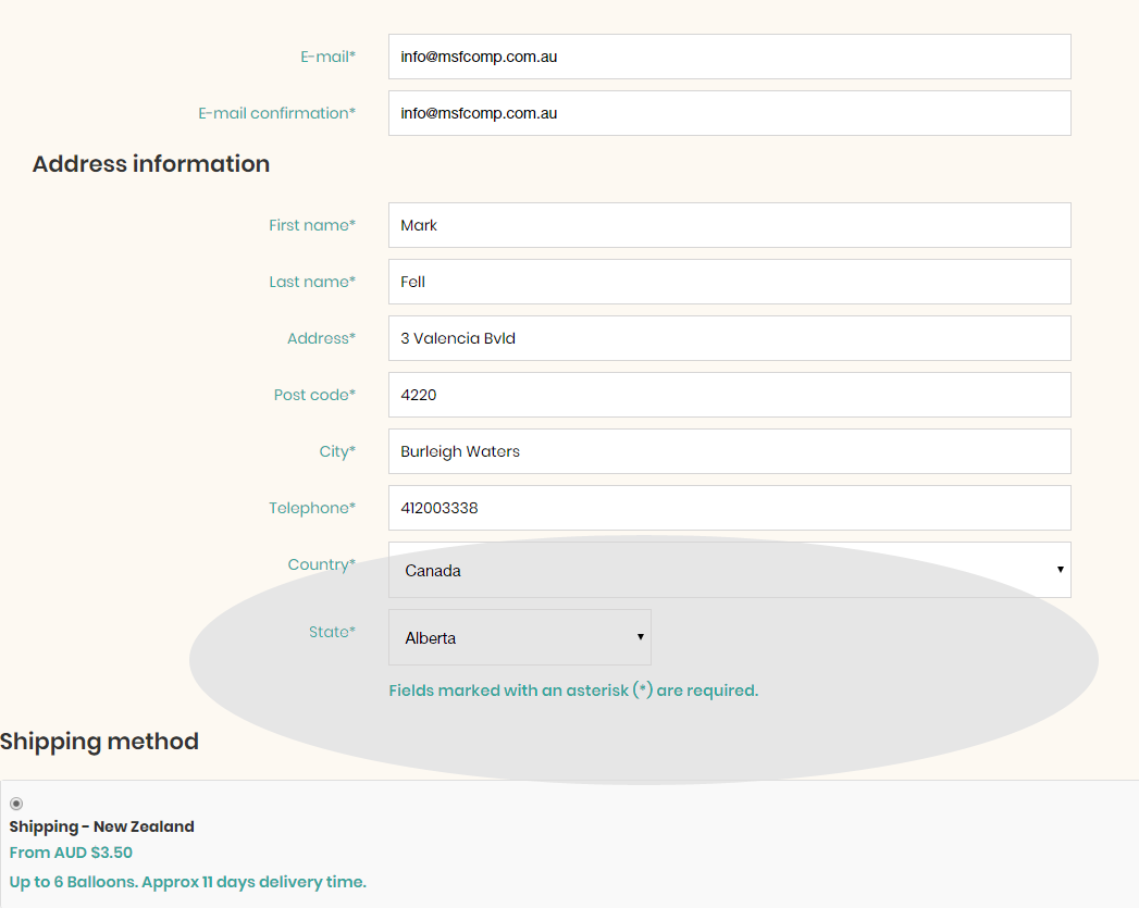 If I select the Country as New Zealand, I still get Australian shipping. Does the page not refresh if you select a different country in the form?