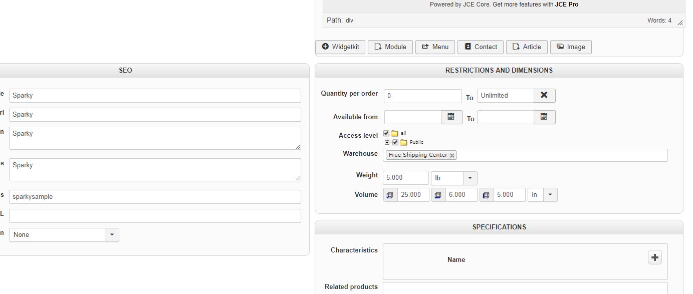 I verified the products I'm testing have 1) weight, 2) dimensions, and 3) are in the BJ Discount Store warehouse.