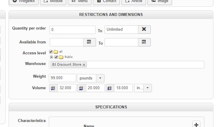 (again, I verified the products I'm testing have 1) weight, 2) dimensions, and 3) are in the BJ Discount Store warehouse. )