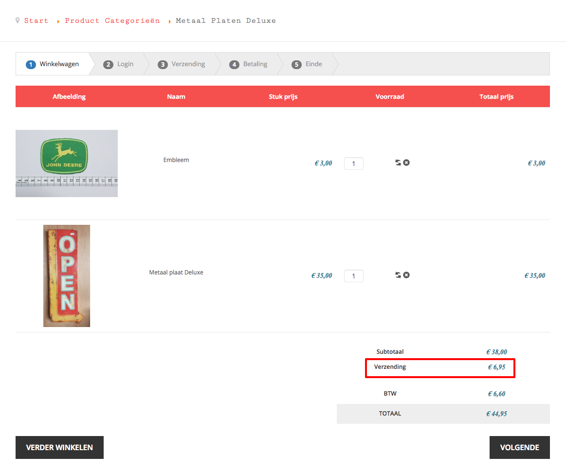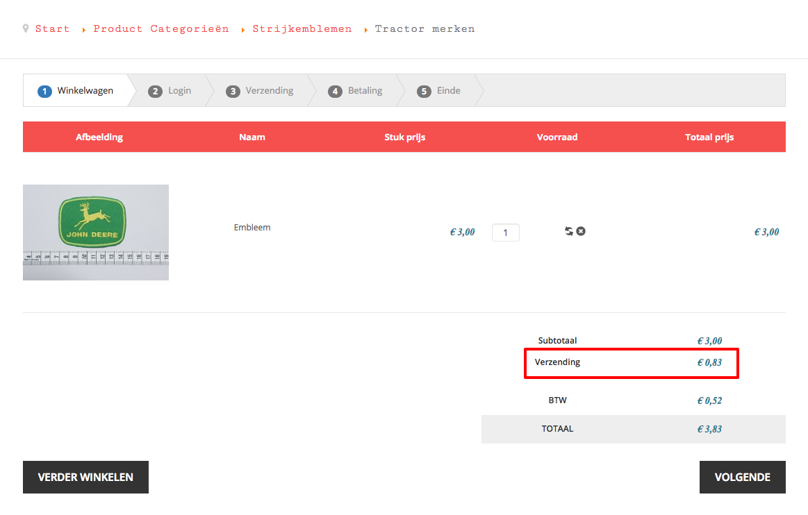 But when I remove the big product from the cart, the shipping costs should be €0,83, but it doesn't change. It stays on €6,95. What is going wrong here?