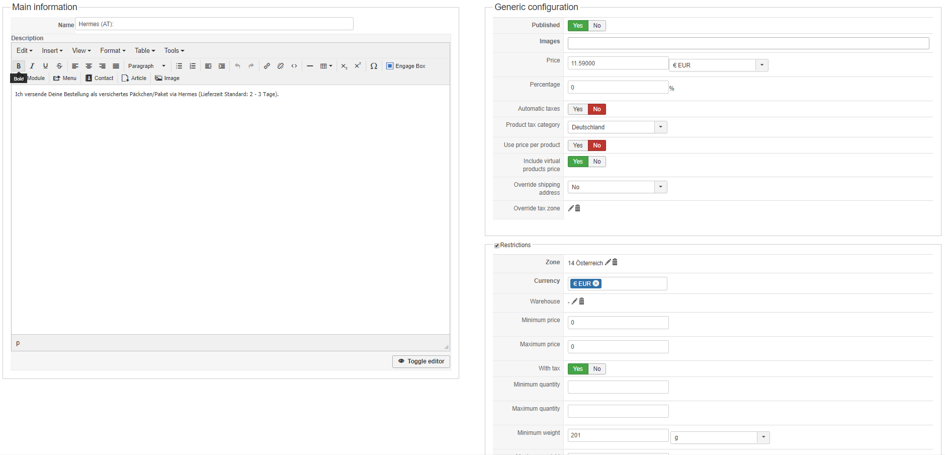 So I copied the shipping methods from Germany now to Austria and Switzerland with the difference, that I adjusted the price for it and also the zone restriction (two more (see screenshot):