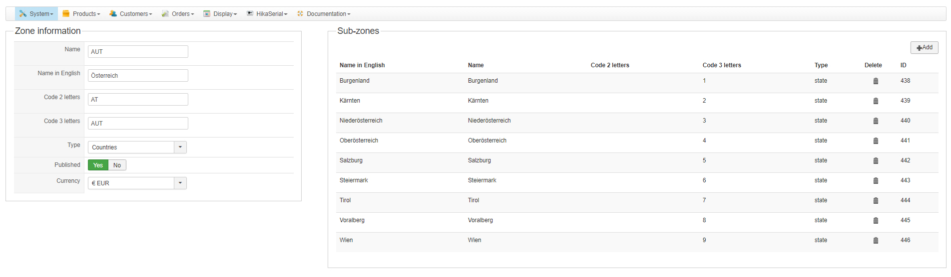 I additionally setup the zones and activated them (so I have only Germany, Austria and Switzerland as countries and the respective regions within this counties active) - they are also shown, when active, in the shopping cart at checkout (see next screenshots)