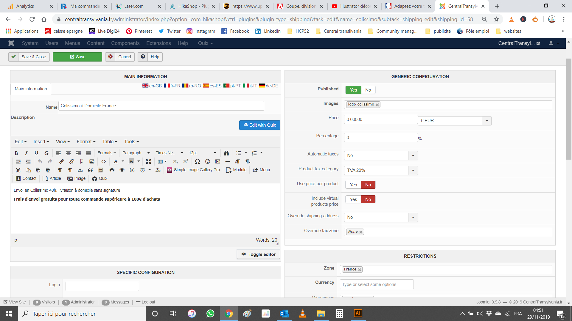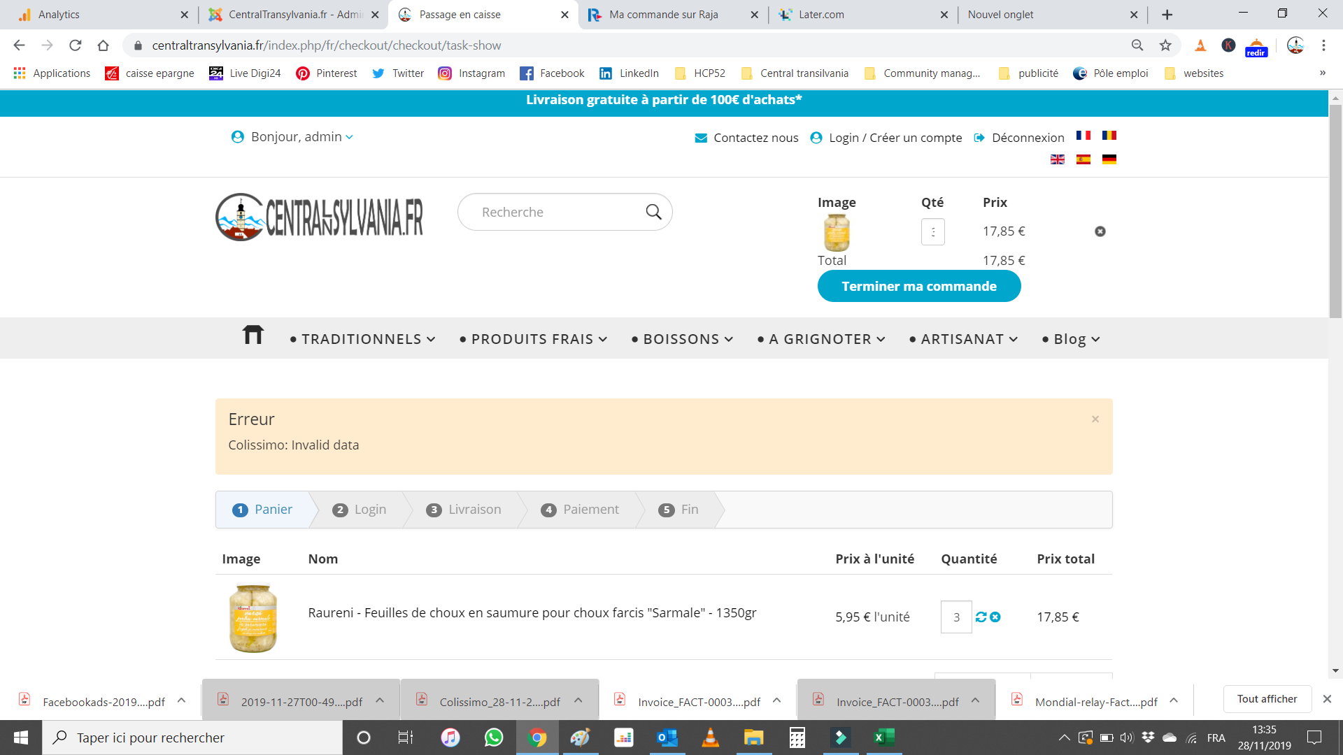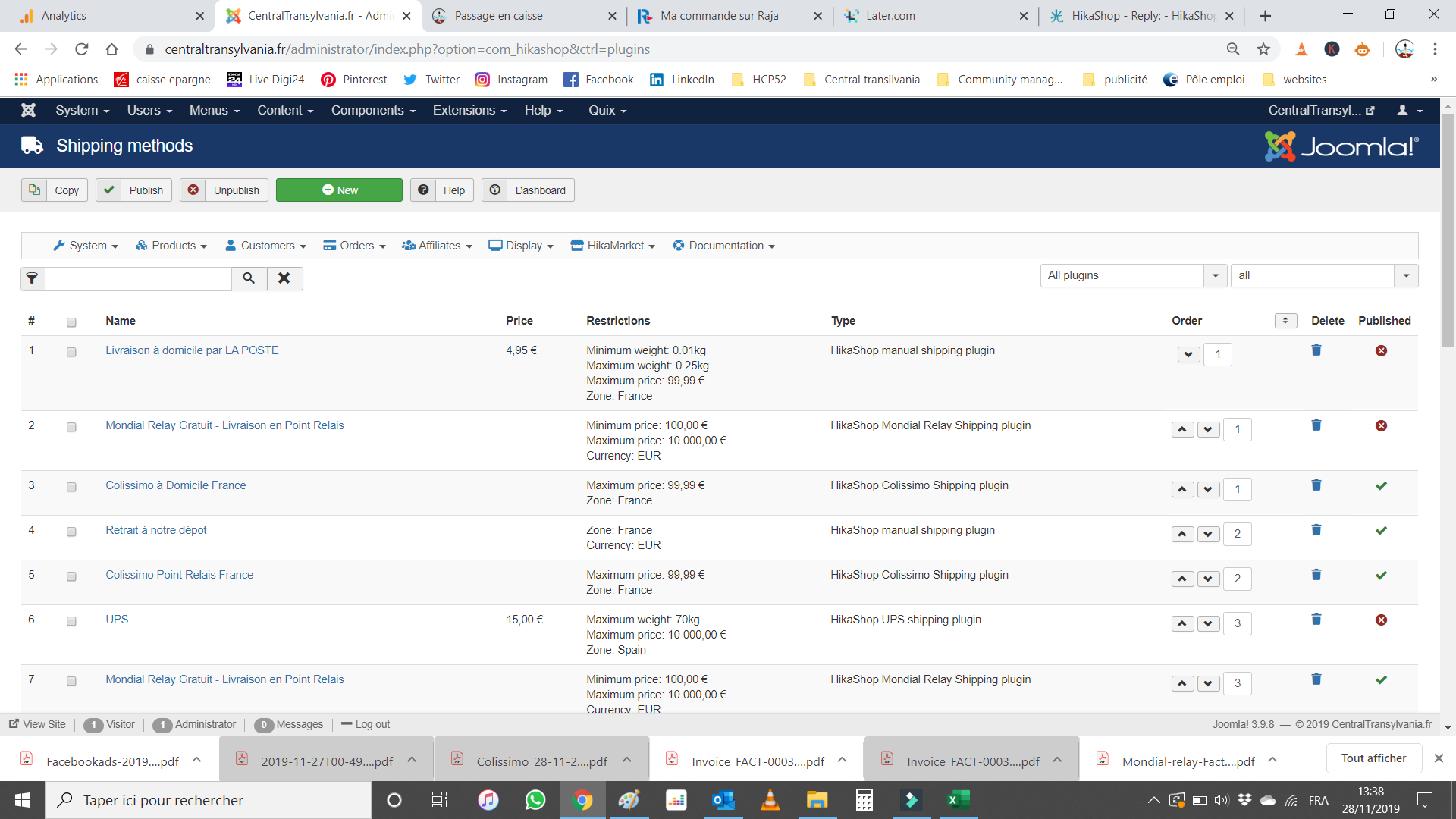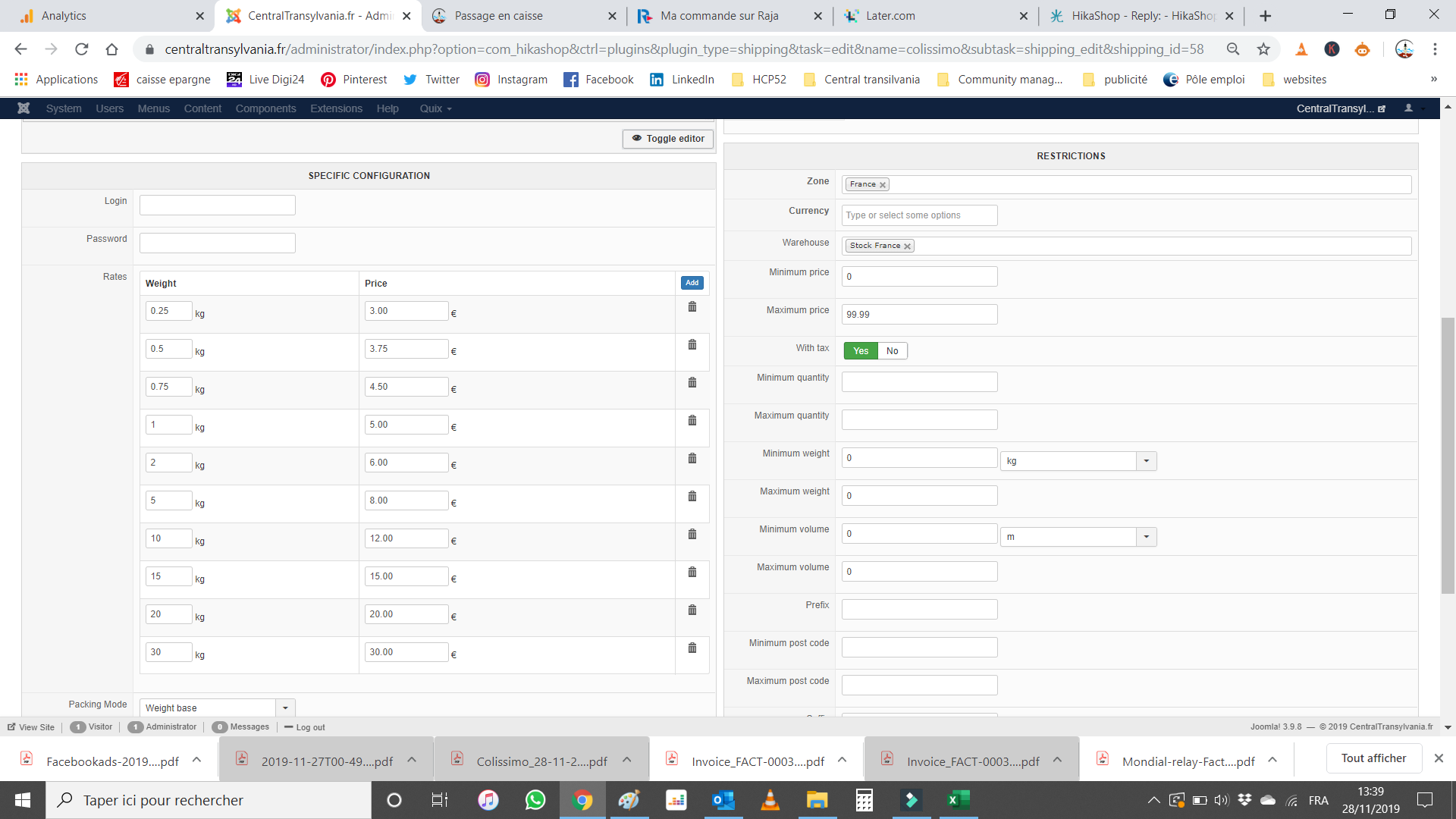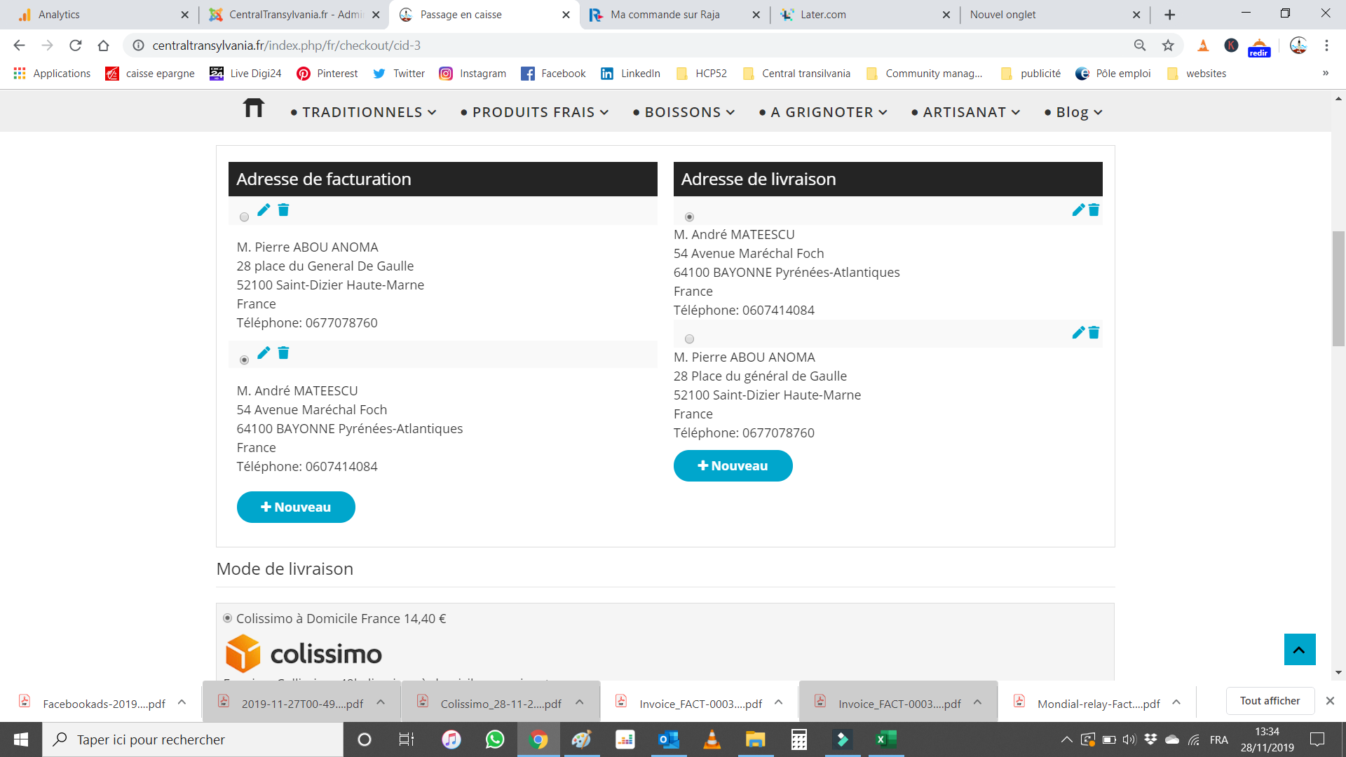 J'ai donc supprimé le mode de livraison a domicile, configuré sans identifiants, et laissé la livraison en point relais en attendant votre retour.