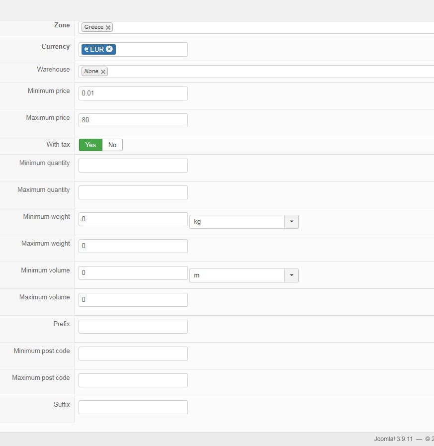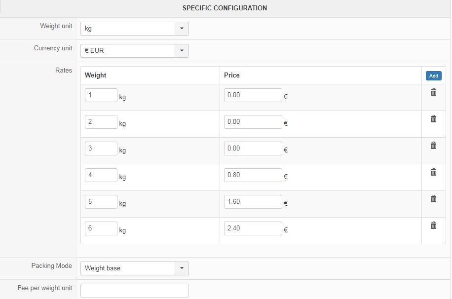 The weight shipping plugin allow to configure fast some price range based on the cart weight.