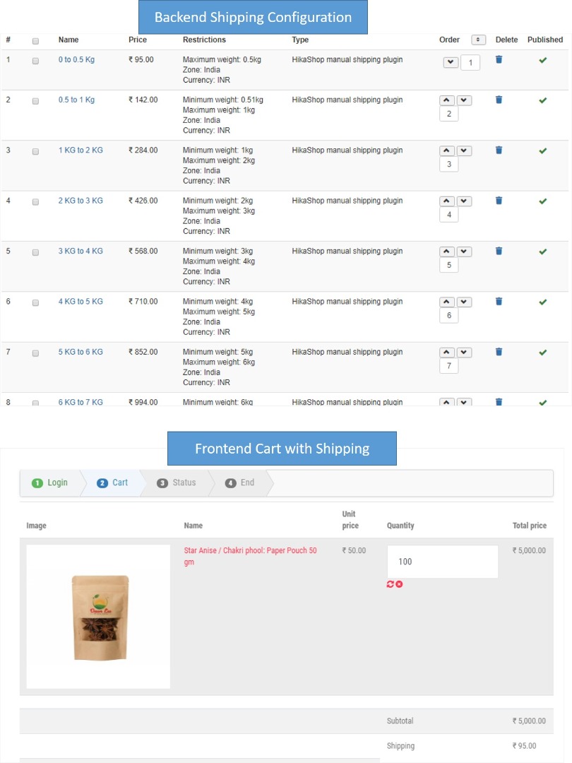 Here the shipping will remain Rs. 95 only despite the weight being much more.