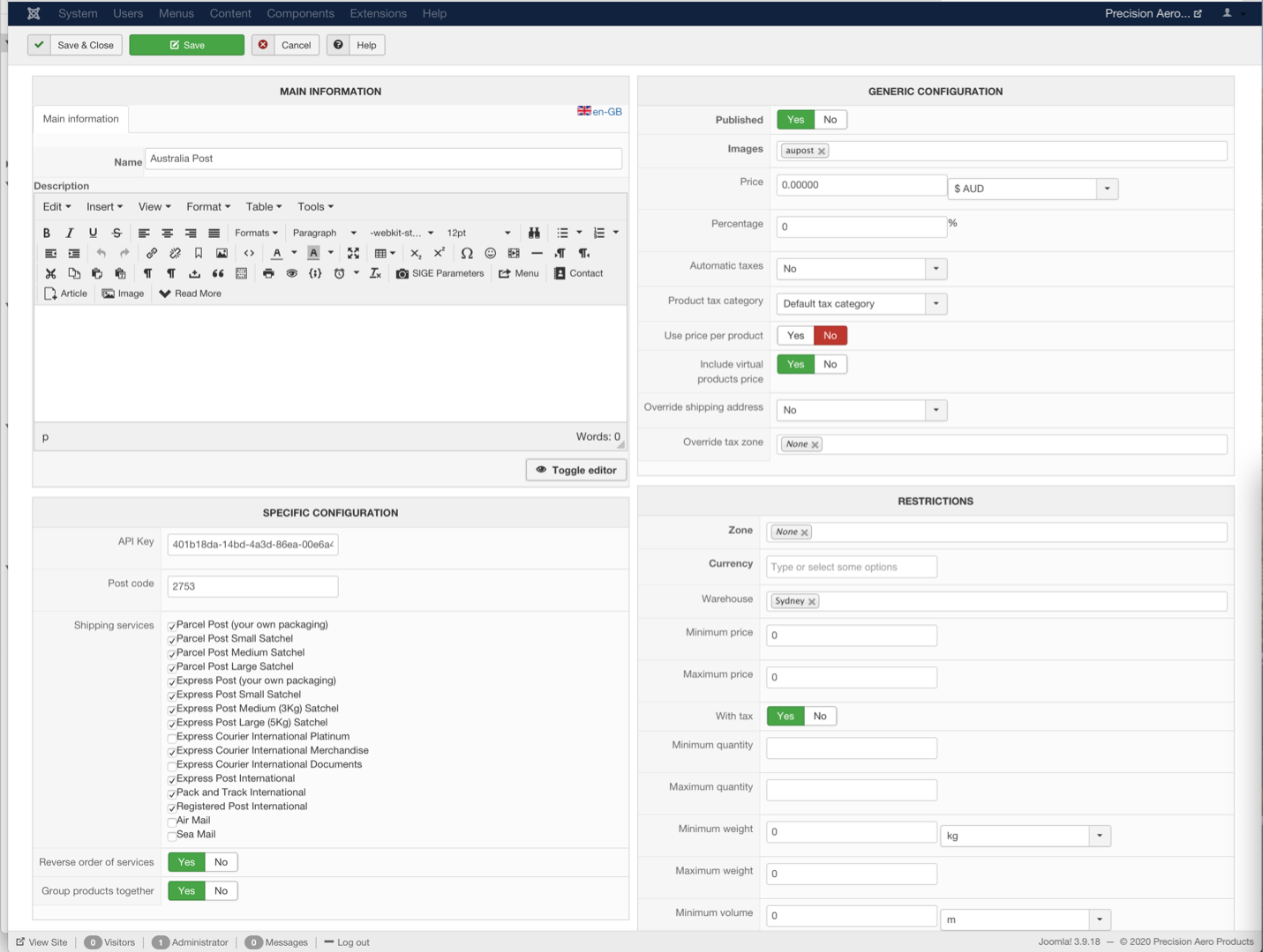 I also note that the Australia Post international backend services listed in the "Hikashop Australia Post eDeliver Shipping Plugin V2" don't match what Australia post actually offers. However, when a cart is created the correct international service names are listed for the user.
